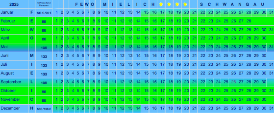 •In den Monaten Mai bis Oktober vermieten wir nur wochenweise von Samstag bis Samstag.